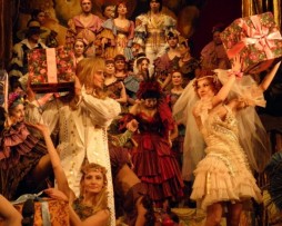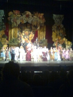 Был на этом спектакле, мне показался он средненьким, может потому что сидел далеко... Декорации и костюмы очень красивые. |