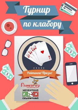 Предпоследний турнир по клабору от «Планеты Игр» в этом месяце! Кто возьмёт призовые в августе?! Узнаем после 2-х последних турниров! Регистрируйтесь заранее! Место: пиццерия «Челентано» (ул. Мечникова, 34). Дата: 25.08.15. Время: 19:00-24:00!